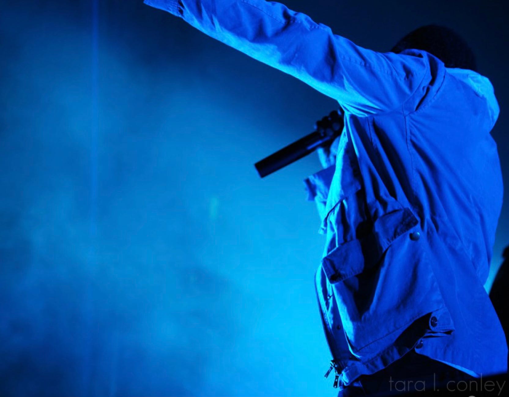 Photo by Tara L. Conley. Kanye West performing on stage at Nike PlayCity, Los Angeles, California 2008.